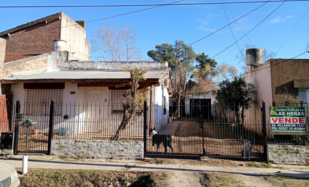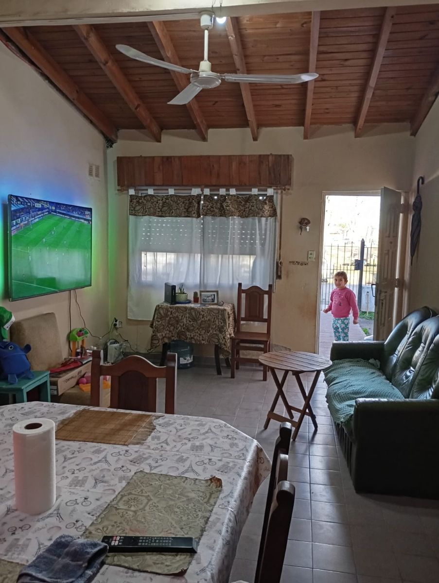 Vivienda de dos dormitorios, baño comedor cocina, cochera-galpón, calle de tierra mejorada. servicios: luz, gas natural, cloacas pasan, agua potable.-